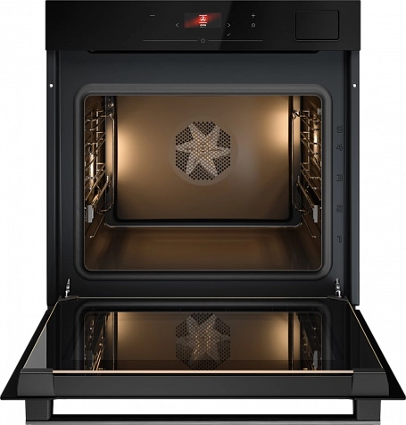 Ассортимент аксессуаров включает универсальный противень, решетку, противни из нержавеющей стали с перфорацией и без перфорации, а также термозонд для точного определения степени прожарки. Телескопические направляющие на одном уровне обеспечивают удобный доступ к блюду, мягкое открывание и закрывание двери подчеркивает внимание к деталям. Внутренняя поверхность покрыта высококачественной пиролитической эмалью, благодаря чему чистка становится проще: предусмотрена режим очистки паром и пиролитическая самоочистка.