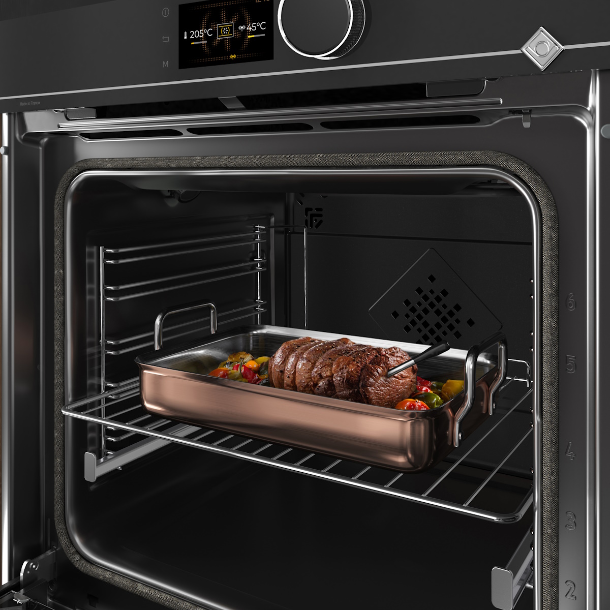 <li>Противни: 1 противень глубиной 45 мм; 1 противень глубиной 8 мм; перфорированный противень (Airfry) 20 мм</li>