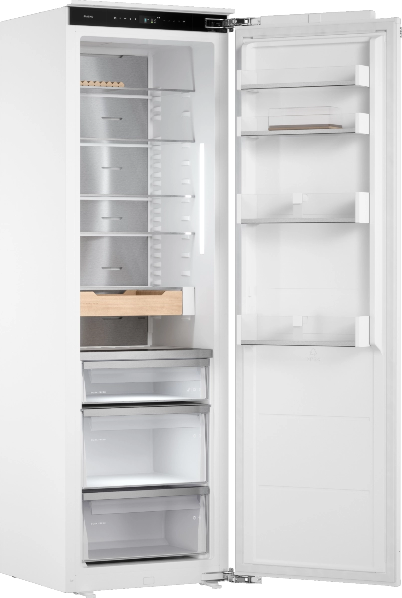 Особое внимание уделено сохранению свежести фруктов и овощей: ящик с автоматической регулировкой влажности создает идеальный микроклимат, а инновационная зона Dura Fresh обеспечивает длительное хранение скоропортящихся ингредиентов. Внутреннее пространство освещается ярким и экономичным светодиодным светом, расположенным как по бокам, так и в зоне подачи, обеспечивая прекрасную видимость каждого уголка.