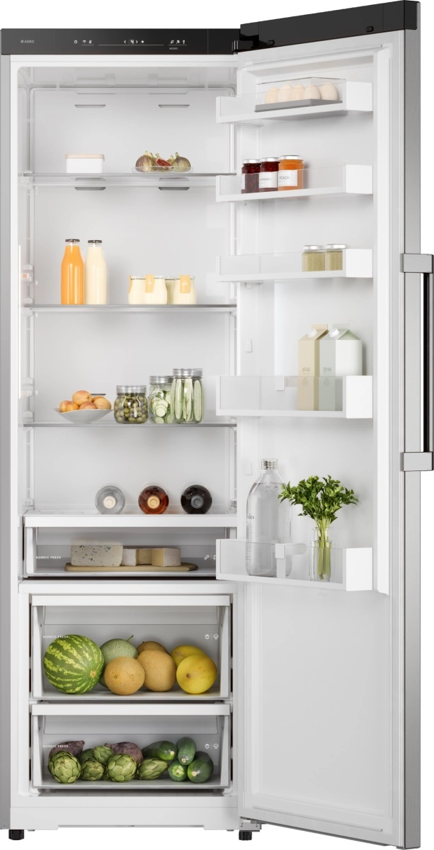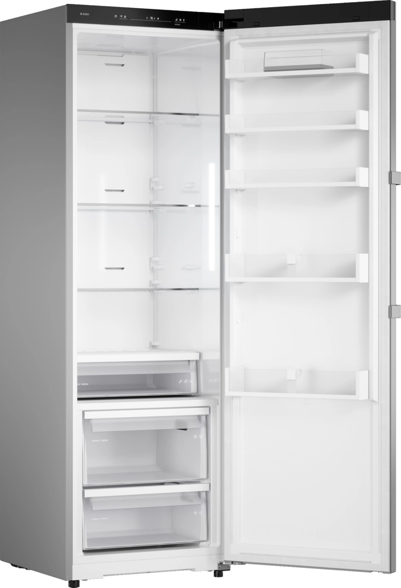Холодильник ASKO RFR286KNCS1 — современное и функциональное решение для дома, которое сочетает вместительность, энергоэффективность и удобство эксплуатации. Объём холодильной камеры составляет 382 л, внутреннее пространство организовано с упором на практичность: предусмотрена нулевая зона для деликатных продуктов и две отдельные зоны для фруктов и овощей с автоматическим контролем влажности. Все ящики установлены на телескопических направляющих для плавного выдвижения, полки и дверные полки выполнены из прочного стекла, а окантовки — из качественного пластика. Боковая LED‑подсветка равномерно освещает внутреннее пространство, исключая слепящие пятна и обеспечивая комфортный доступ к продуктам.