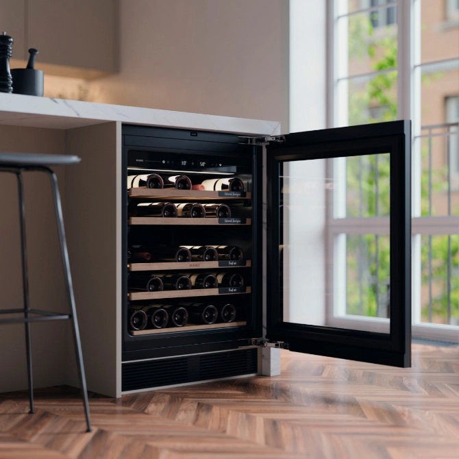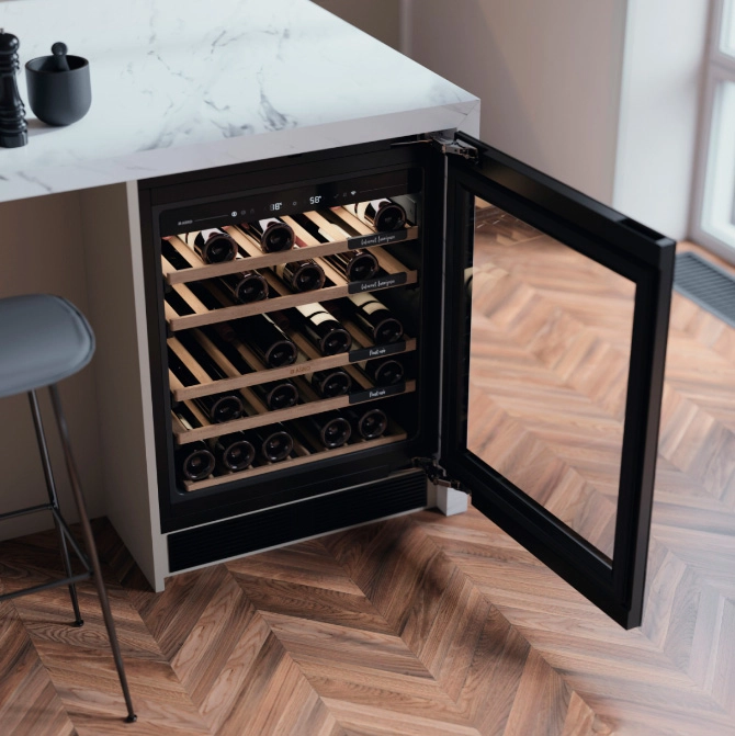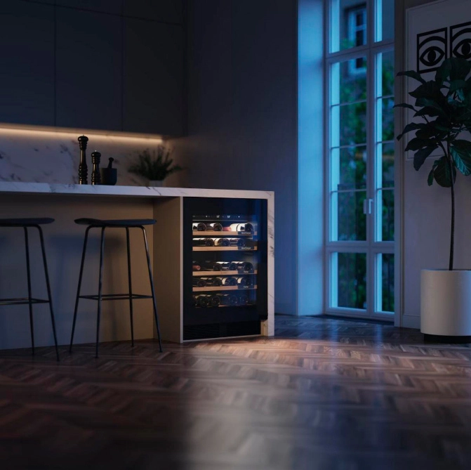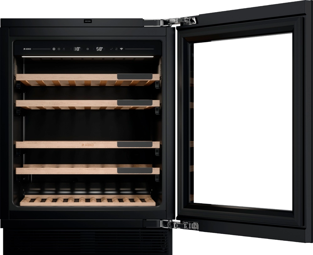 Винный климатический шкаф ASKO WCN15842G ВКН — модель вместимостью 44 бутылки. Инверторный компрессор создает минимальную вибрацию, Еще одним важным аспектом хранения вина является защита его от вредного ультрафиолетового излучения. Стекло в дверце защищает вашу коллекцию от ультрафиолетовых лучей, которые потенциально могут повредить ценное вино. Устройство поддерживает уровень влажности около 70% — оптимальный уровень для хранения вина и сохранения свежести пробки до момента подачи. Вы можете в любое время проверить этот уровень в шкафу в приложении.