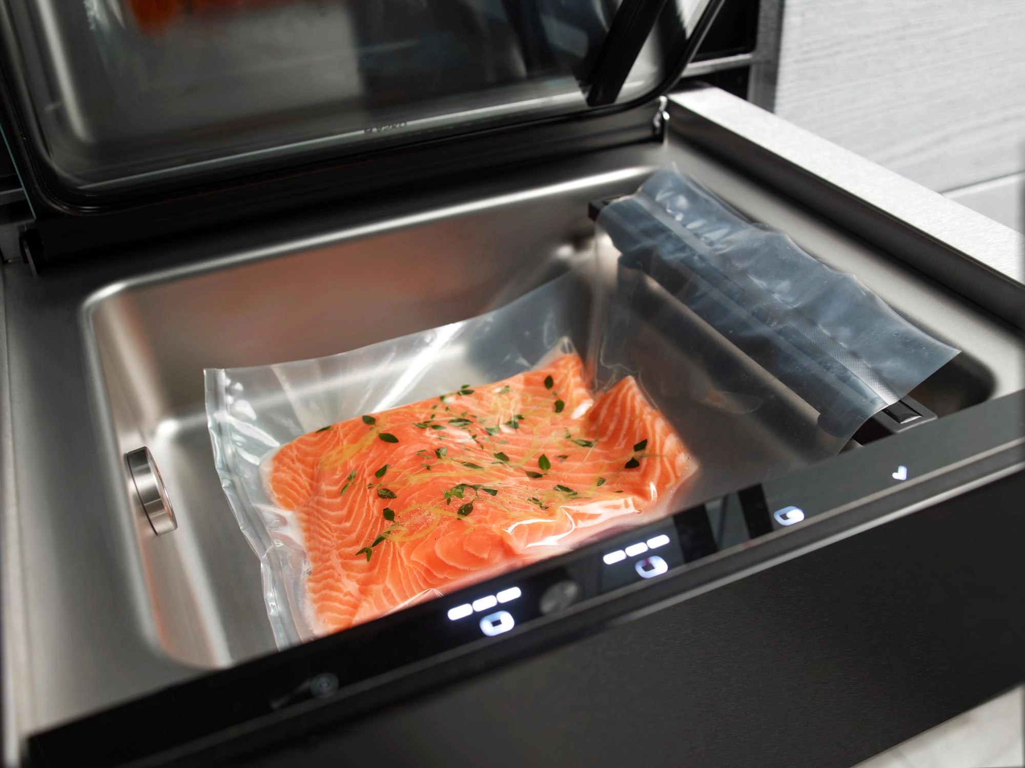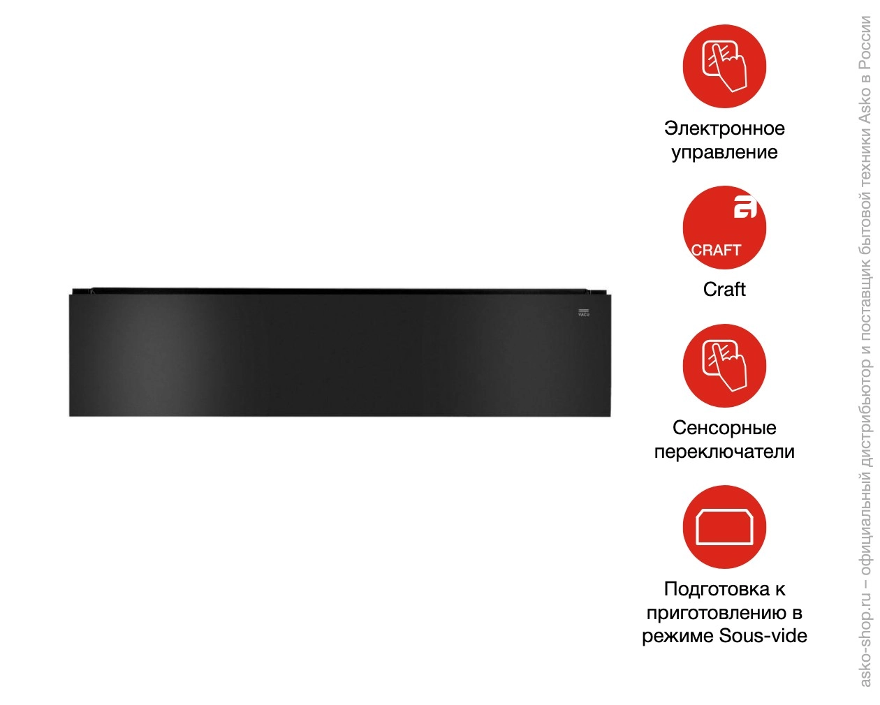 Вакууматор Asko ODV8127A принадлежит к дизайнерской линейке Craft. Его фасад выполнен в цвете антрацит, который прекрасно подходит бытовой технике в дизайне hi-tech. Этот профессиональный помощник поможет подготовить различные продукты к хранению или употреблению. Чаще всего вакуум используют для заморозки, мариновки, консервирования или особой техники приготовления су-вид. Для разной толщины пакетов используется разное время запаковки. Также вакууматор Аско ODV8127A имеет три степени герметизации, исходя из твердости продуктов.