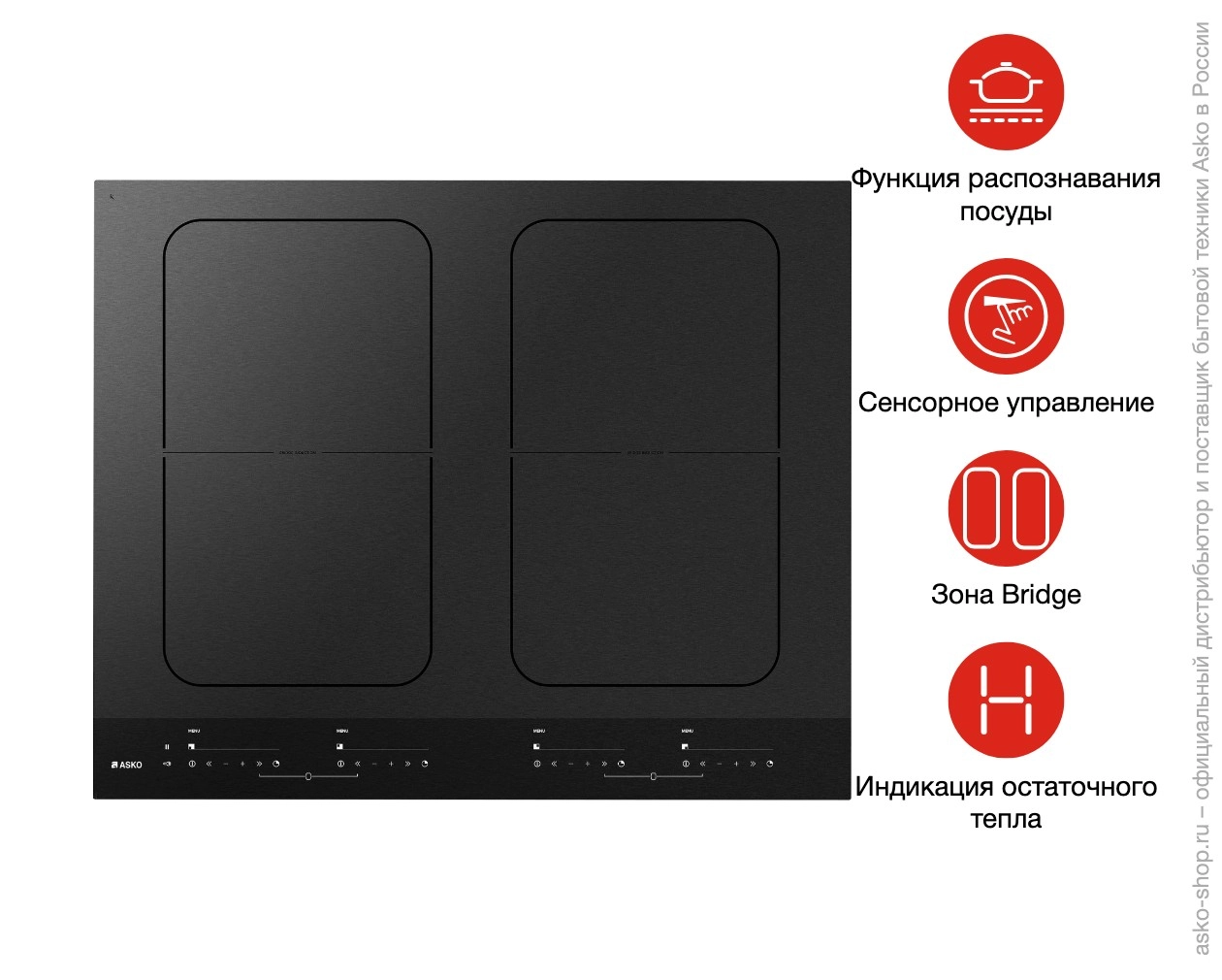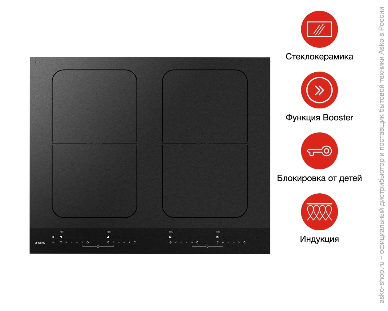 - Варочная поверхность Аско HI1655MF может кратковременно работать на максимальной мощности. Для этого необходимо воспользоваться опцией Booster.