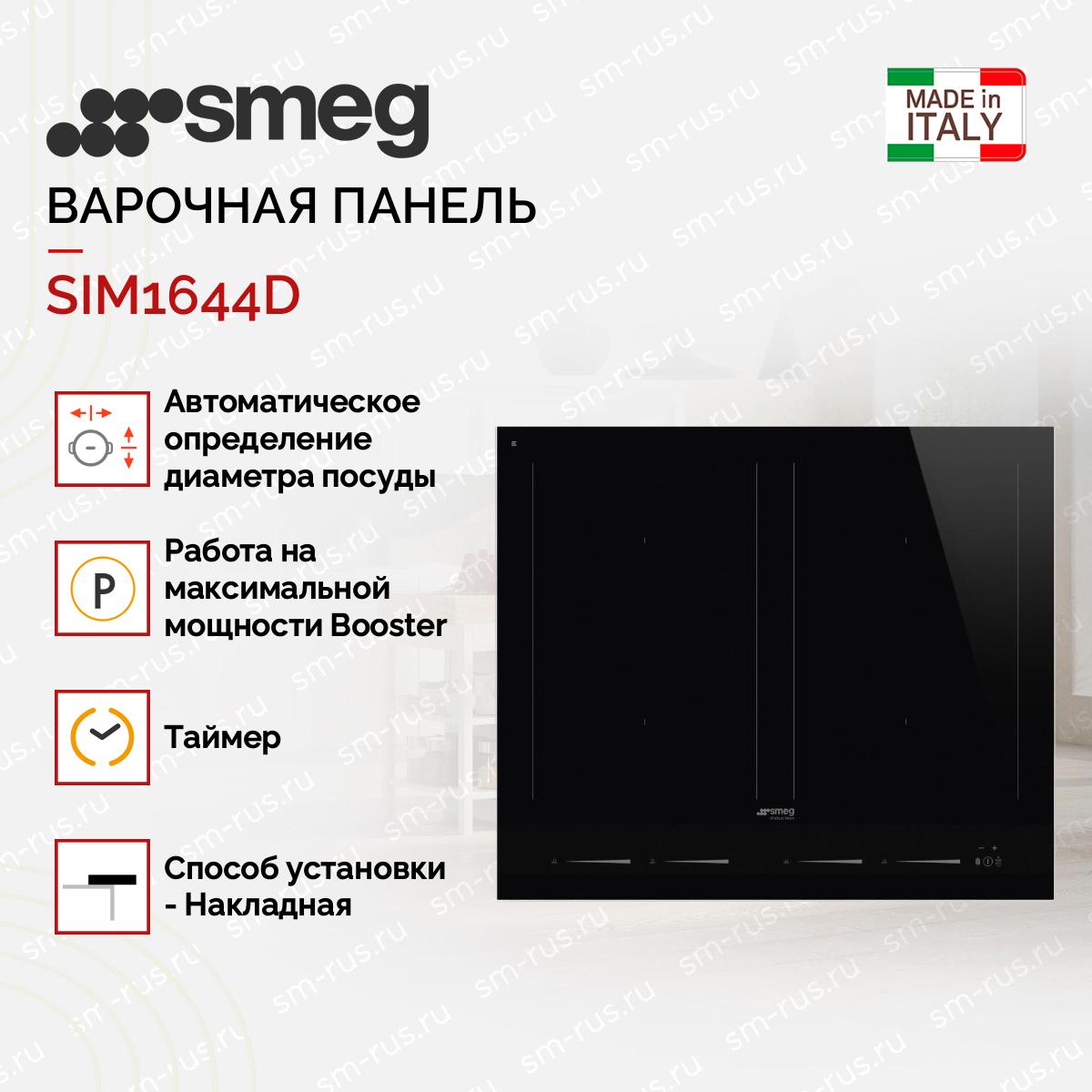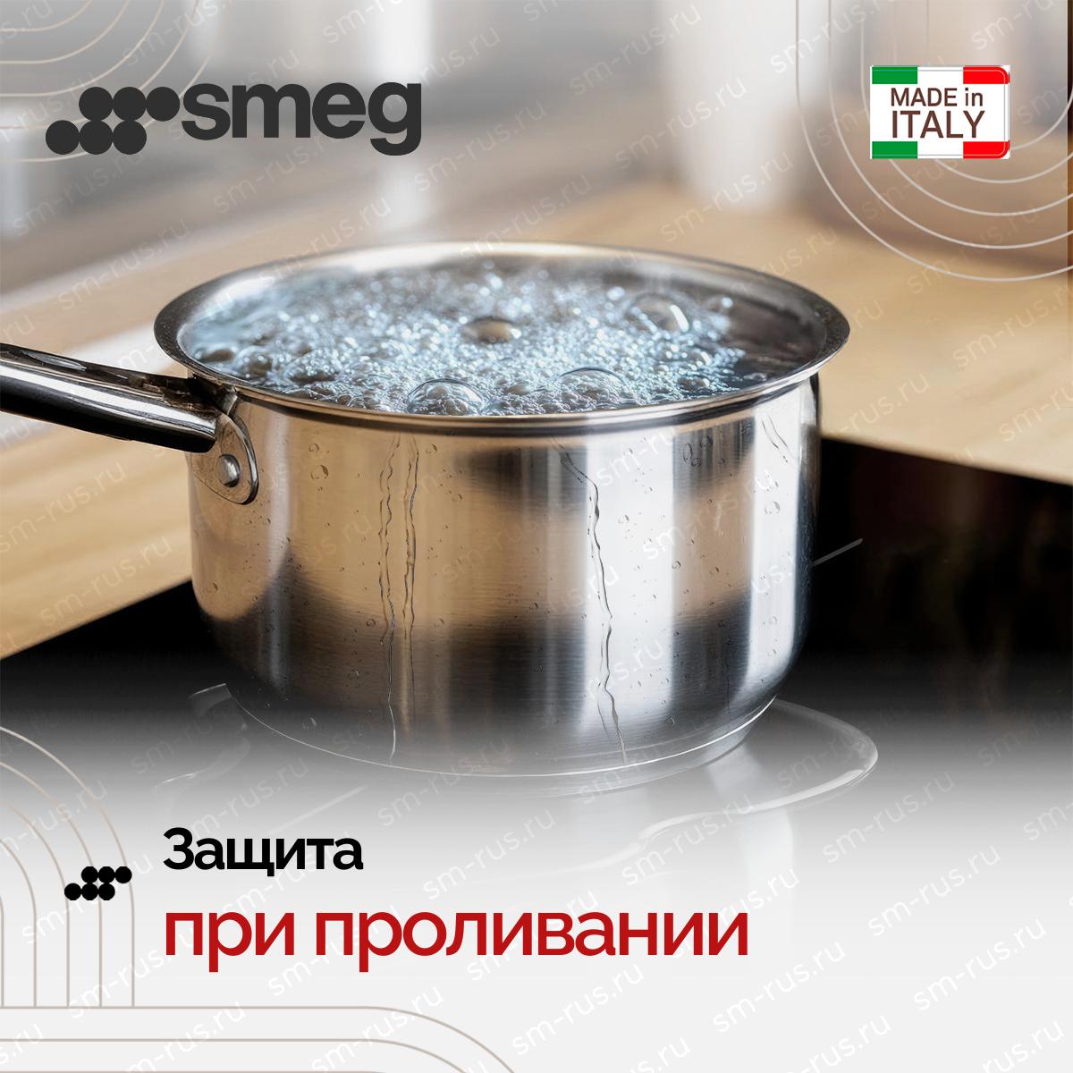 Варочная панель Smeg SIM1644D — современная модель, выполненная в черном цвете. Прибор имеет 4 зоны нагрева, которые можно объединять между собой. Функция блокировки управления обеспечит сохранение установленных настроек, не получится случайно изменить программу, включить или выключить прибор. Индикация остаточного тепла покажет, если зоны нагрева еще не достигли безопасной температуры.