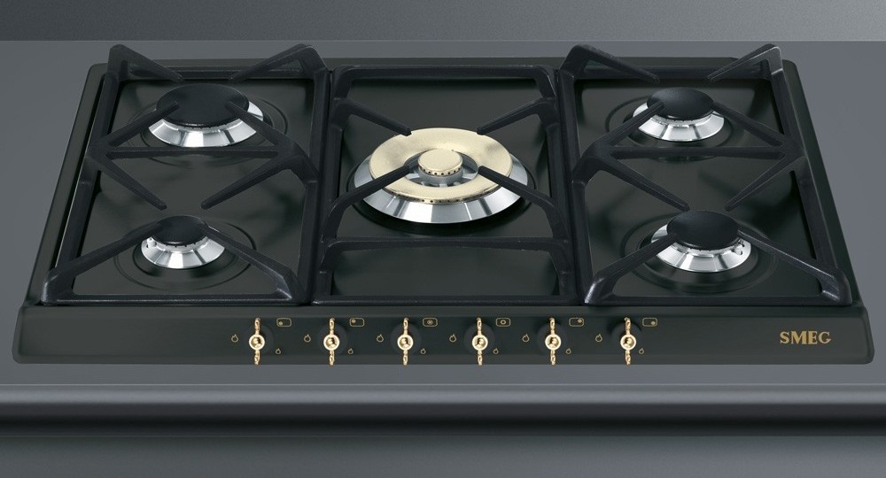 Варочная панель SMEG SPR876AGH представлена в цвете «антрацит» и оснащена пятью газовыми конфорками. Центральная горелка имеет повышенную мощность, что позволяет ускорить процессы нагрева и приготовления, сохраняя, тем самым. максимум витаминов в продуктах. Чугунные решетки отличаются прочностью и долговечностью в эксплуатации, а также придают посуде устойчивость.