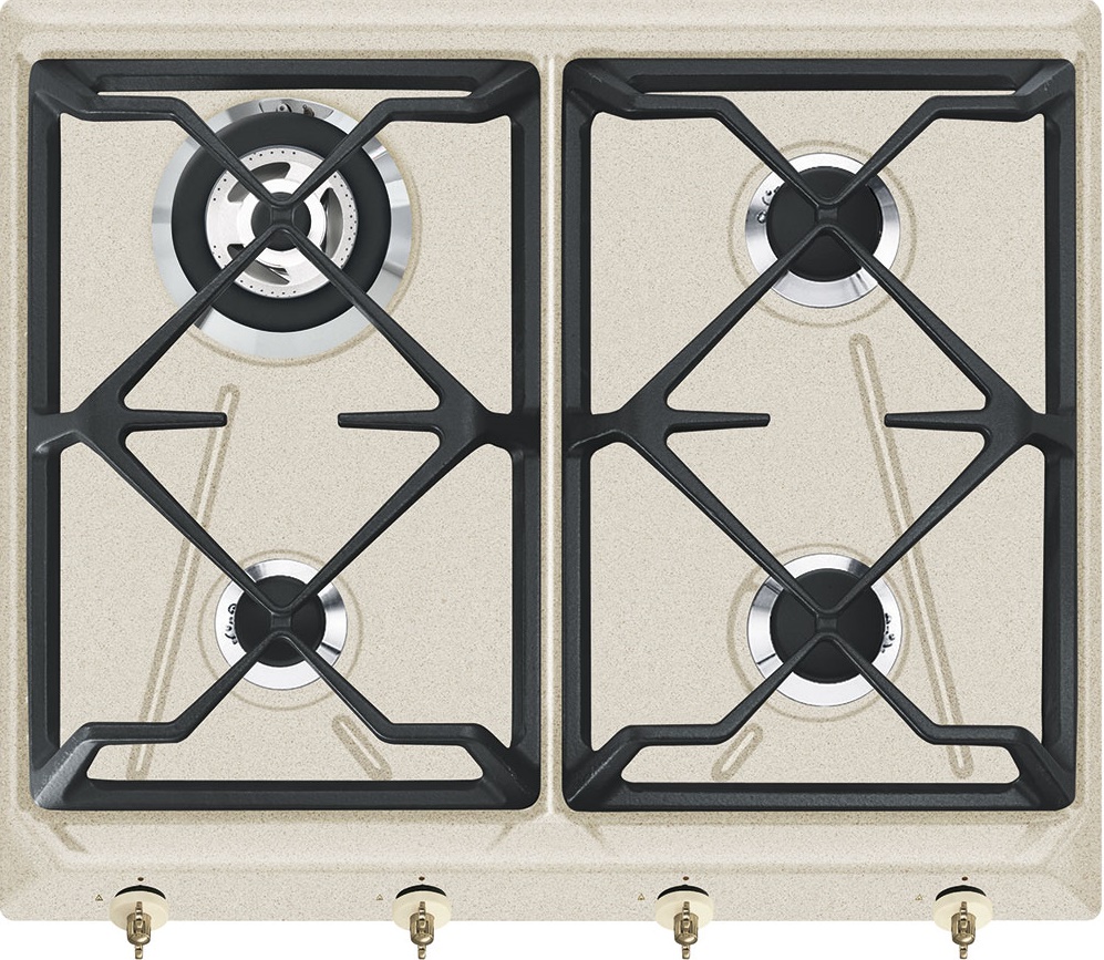 Изящная варочная панель Smeg SRV864AVOGH представлена в цвете «овес». Эмалированная решетка гармонично дополняет корпус модели. Автоматический электроподжиг обеспечивает комфортное пользование прибором.