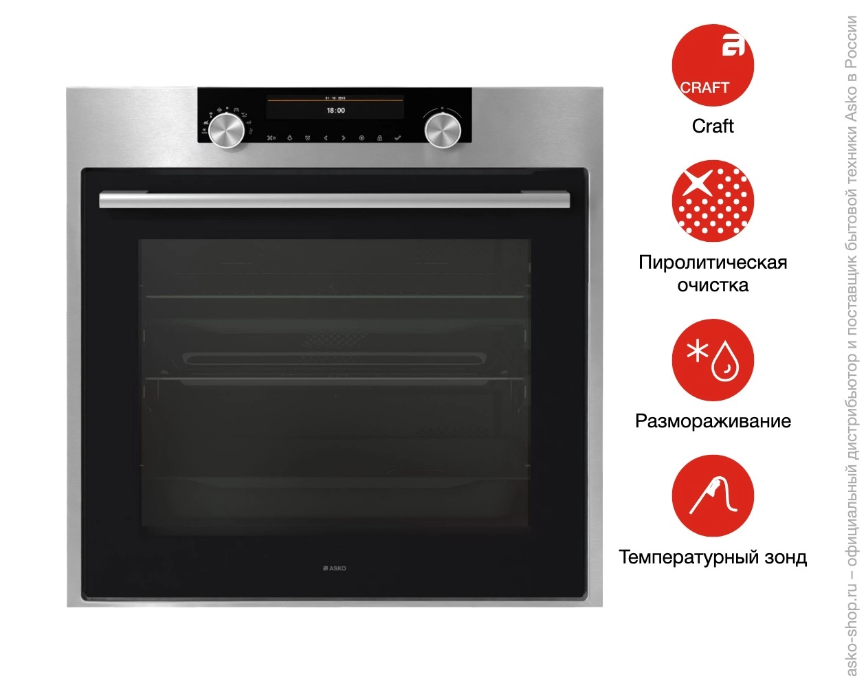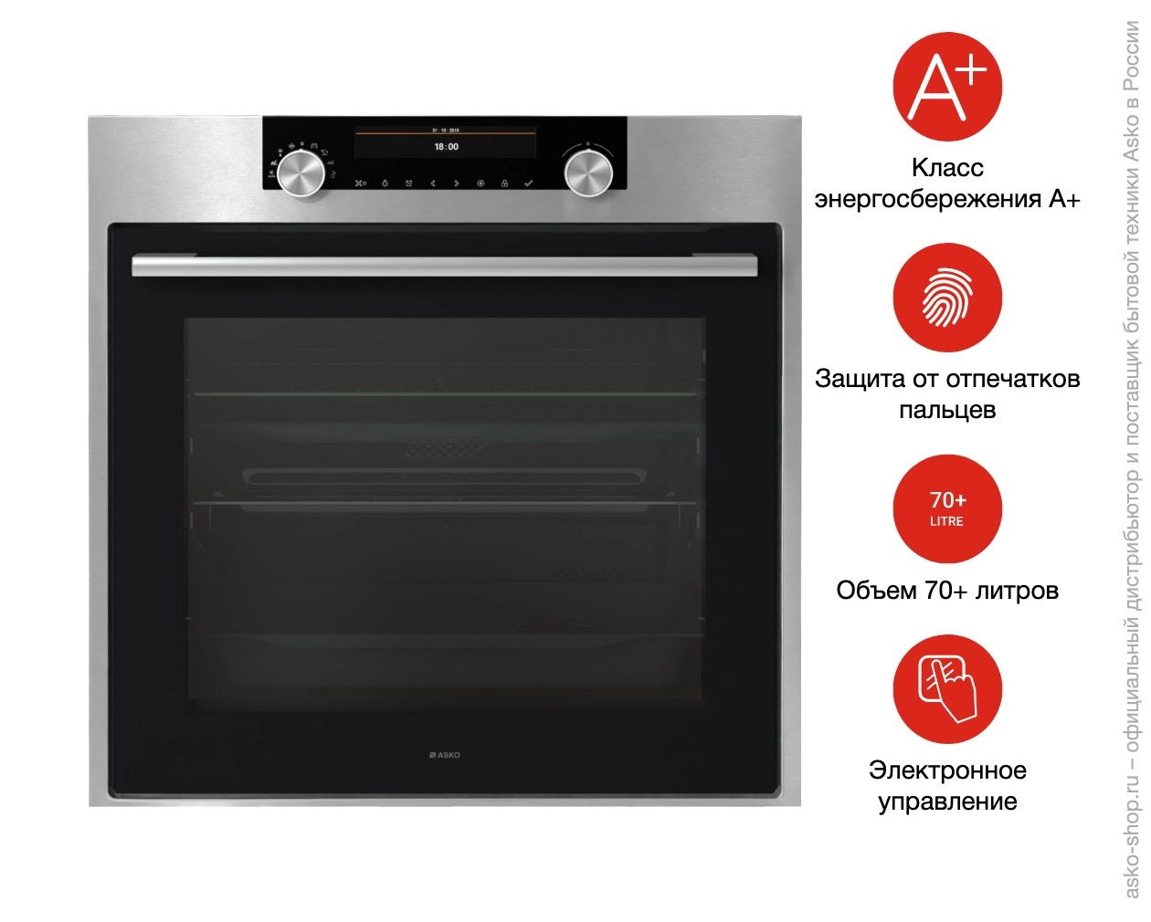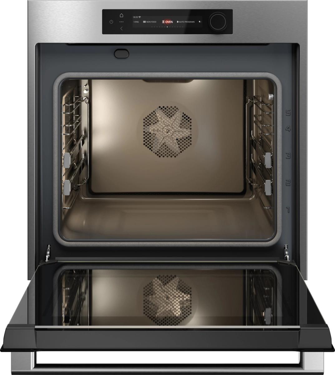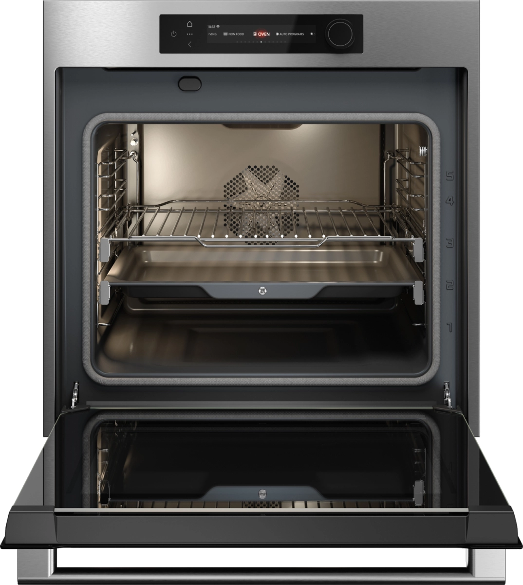 Удобство эксплуатации повышают телескопические направляющие на двух уровнях, плавное закрывание дверцы и новая фирменная ручка. Внутренняя поверхность покрыта высококачественной пиролитической эмалью, позволяющей проводить самоочистку при высоких температурах; для деликатной очистки доступна функция Aqua Clean. Тройное остекление дверцы с внутренним охлаждением уменьшает нагрев корпуса и повышает безопасность.
