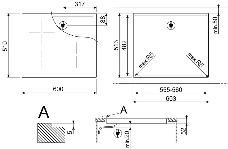 Встраивания вровень со столешницей Цвет сериографии: позолоченная Красные индикаторы на панели управления Режим ограничения мощности Индикация минимального диаметра посуды Тип электрического подключения: однофазное и двухфазное |