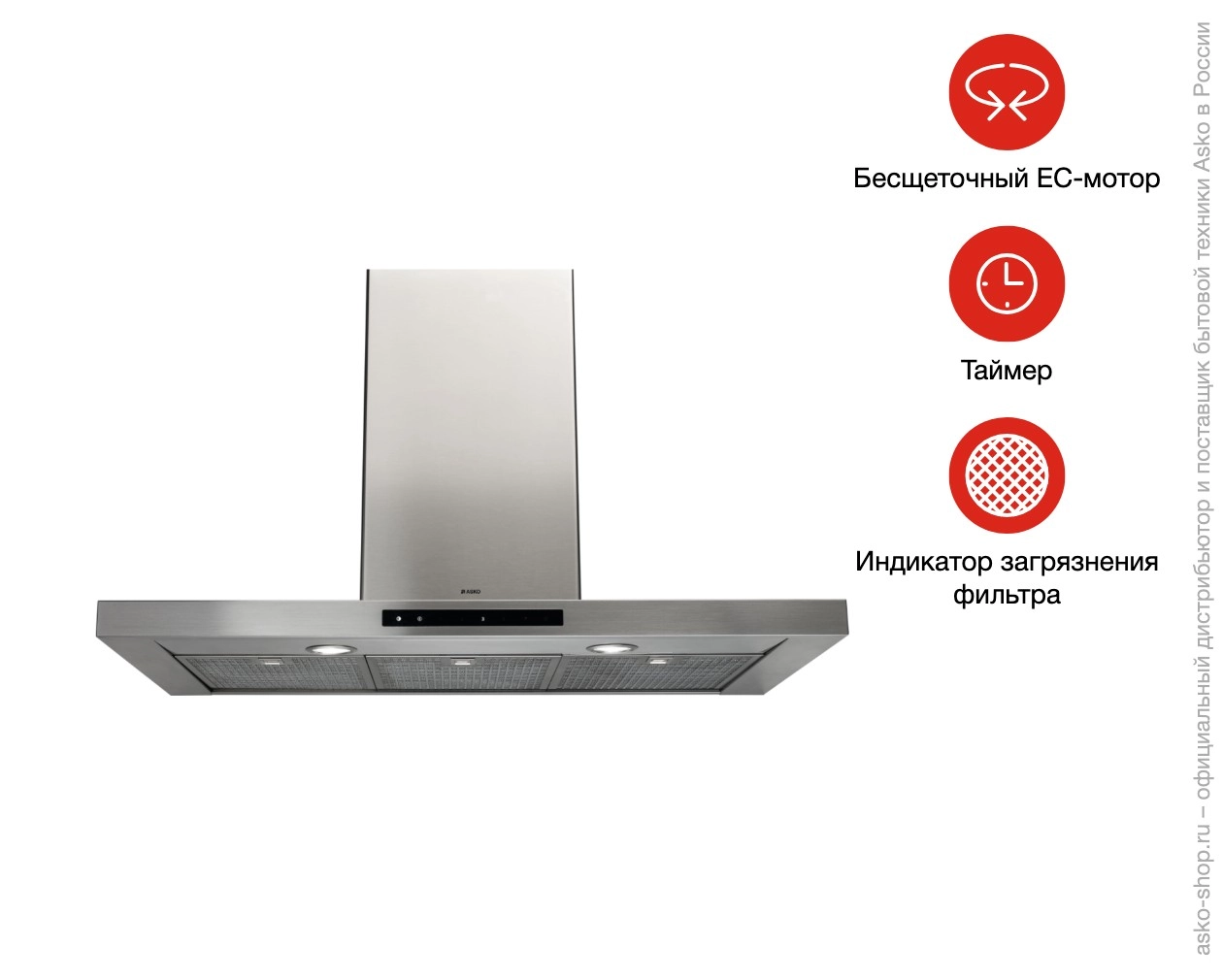 - В вытяжке Аско CI4934S следить за качеством очистки поможет индикация насыщения. Она сообщит, когда пора мыть или менять фильтр. Жироулавливающий фильтр пригоден для посудомоечной машины, а угольный чистке не подлежит.