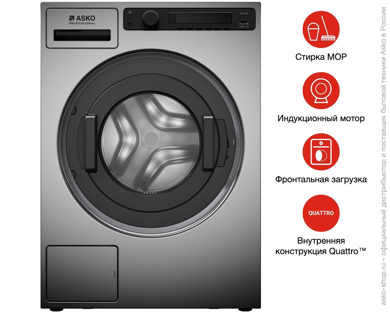Относится к профессиональному типу. Электронная панель управления располагается спереди, можно быстро выбрать одну из 26 предустановленных программ (в том числе для стирки микрофибры, МОПов и дезинфекции), так и создать индивидуальную. Барабан Active Drum™ обеспечивает деликатный уход за любым типом ткани. Модель подготовлена к работе с платежными системами и монетоприемником. Ножки регулируются по высоте. Вы легко разместите конструкцию на любом покрытии. Оборудована 6-ступенчатой защитой от протечек. Специальные датчики контролируют подачу воды. Если они обнаружат неисправность, тут же включат откачку жидкости. Бак и все основные детали сделаны из нержавеющей стали. Они не ржавеют и не деформируются. Изделие прослужит вам много лет.