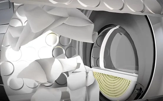 Внутренняя часть сделана из высококачественной нержавеющей стали, что гарантирует долговечность и устойчивость к износу. Объем барабана 117 литров и загрузка до 8 кг позволяют обрабатывать большие объемы белья за один раз. Специальная конструкция Soft Drum™ обеспечивает мягкое и бережное обращение с тканями, предотвращая трение и повреждение. Лопасти Butterfly™ равномерно распределяют воздух в барабане, тщательно высушивая каждое изделие. Благодаря этим технологиям даже деликатные материалы, такие как шелк и шерсть, сохраняют отличное состояние после сушки.