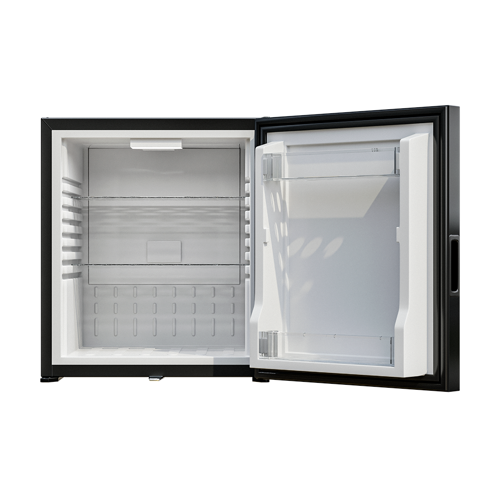 Основа охлаждающей системы мини-бара — гибридная технология, обеспечивающая равномерное охлаждение и низкое энергопотребление. Отсутствие движущихся частей делает работу устройства совершенно бесшумной, что особенно ценно для гостиничных номеров, спален и рабочих кабинетов, где важна тишина.