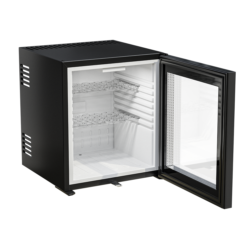 Основа охлаждающей системы мини-бара — гибридная технология, обеспечивающая равномерное охлаждение и низкое энергопотребление. Отсутствие движущихся частей делает работу устройства совершенно бесшумной, что особенно ценно для гостиничных номеров, спален и рабочих кабинетов, где важна тишина.
