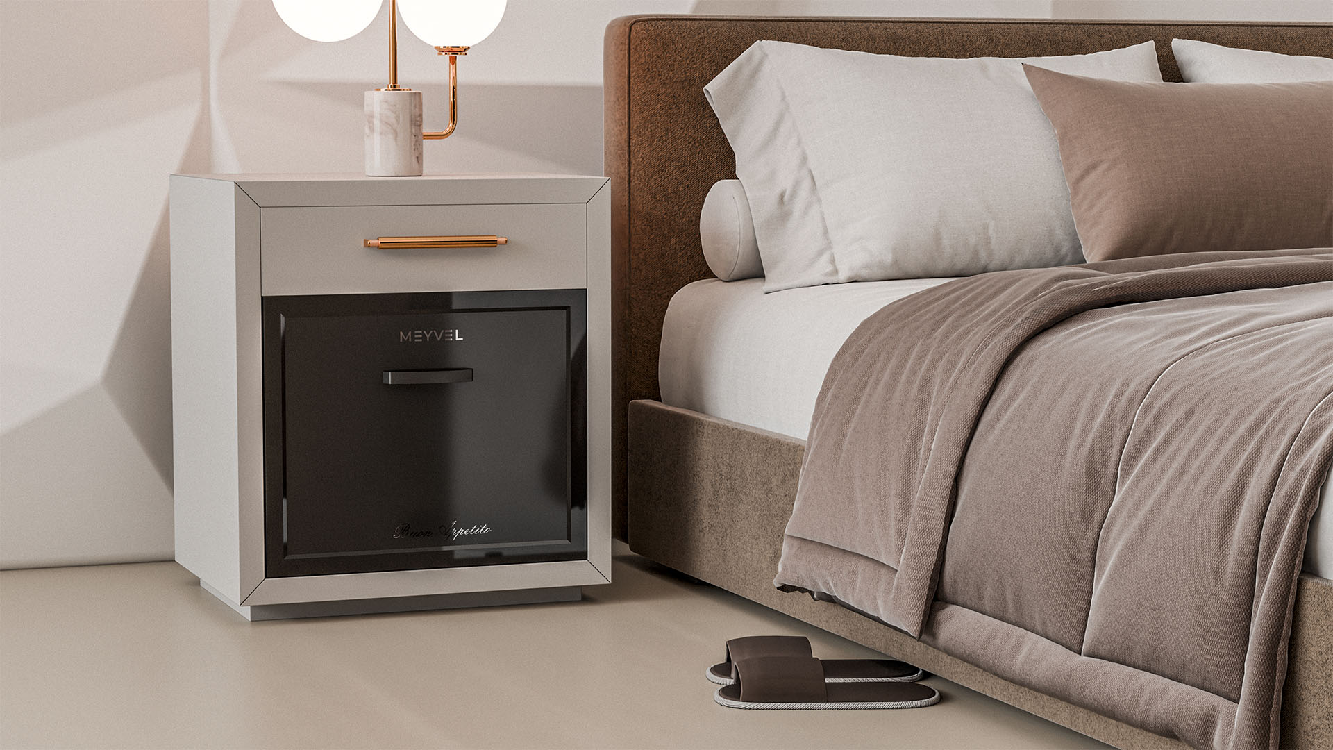Многие компактные холодильники неприятно шумят, что становится проблемой в ночное время или небольших пространствах. Но гибридная система Meyvel работает так тихо, что мини-бар можно установить даже в спальне или кабинете без риска нарушить комфорт.