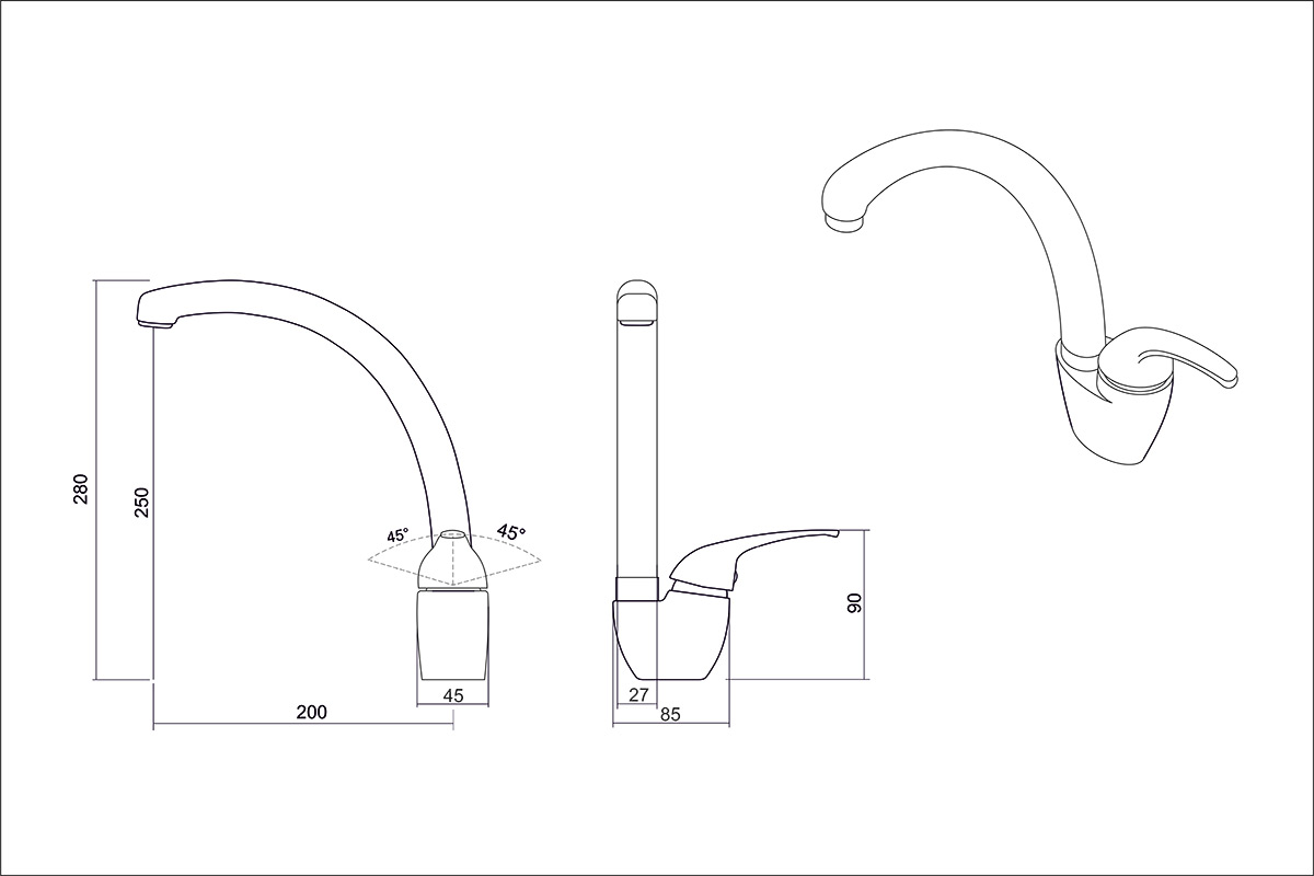 • Высота смесителя: 280мм • Изоляторы против нагрева ручек • Керамический картридж • Поворотный излив • Материал - латунь • Установочное отверстие под смеситель Ø 35 мм • Гарантия на смеситель 5 лет