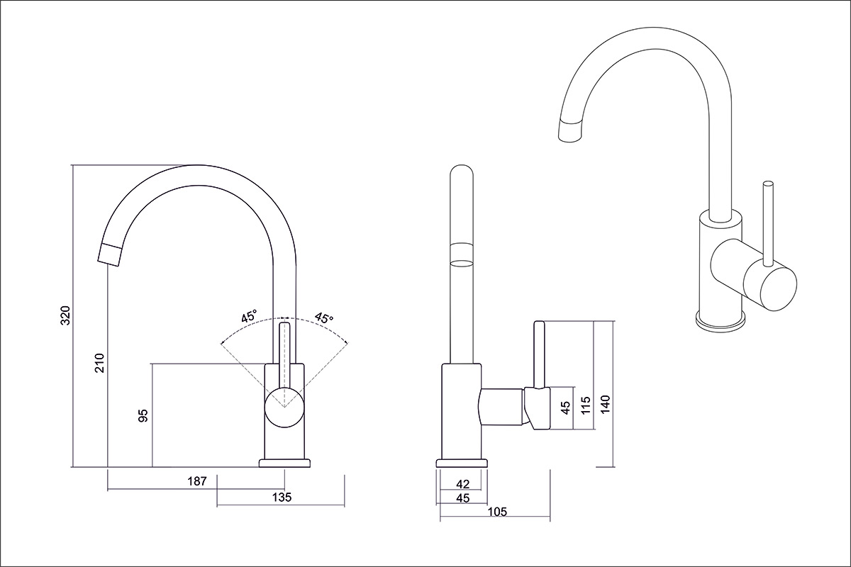 • Высота смесителя: 320мм • Изоляторы против нагрева ручек • Керамический картридж • Поворотный излив • Материал - латунь • Установочное отверстие под смеситель Ø 35 мм • Гарантия на смеситель 5 лет