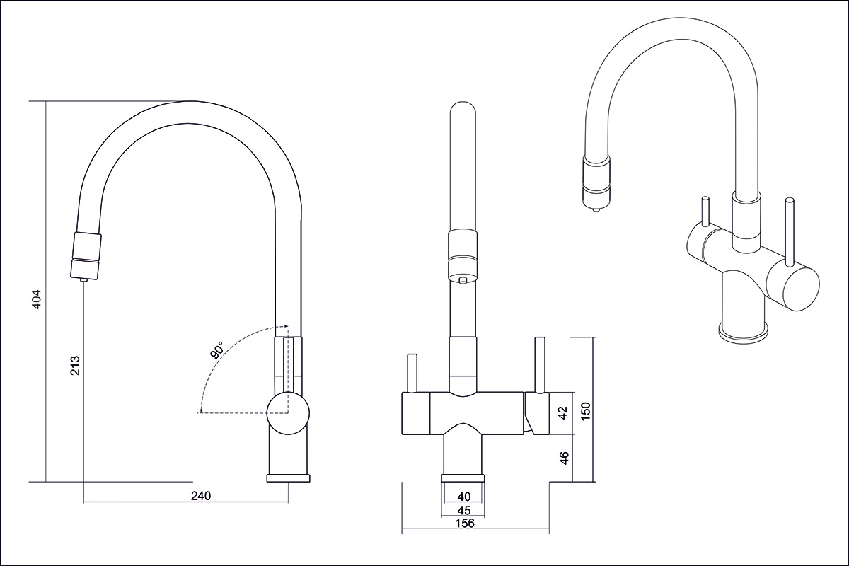 Кухонный смеситель с возможностью подключения фильтра для очистки воды. Фильтрованная вода подается отдельной ручкой через отдельную трубку и не смешивается с водопроводной водой. Однорычажное управление поможет легко регулировать температуру и напор подачи воды.