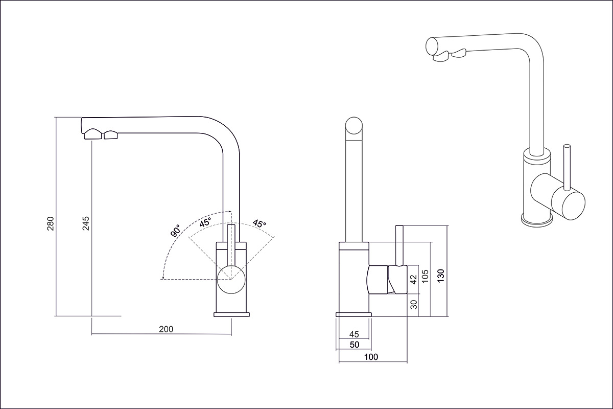 Кухонный смеситель с возможностью подключения фильтра для очистки воды. Фильтрованная вода подается через отдельную трубку и не смешивается с водопроводной водой. Однорычажное управление поможет легко регулировать температуру и напор подачи воды. Соответствует стандартам DIN DVGW.