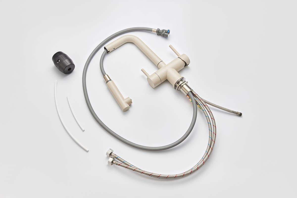 Кухонный смеситель с возможностью подключения фильтра для очистки воды. Фильтрованная вода подается отдельной ручкой через отдельную трубку и не смешивается с водопроводной водой.