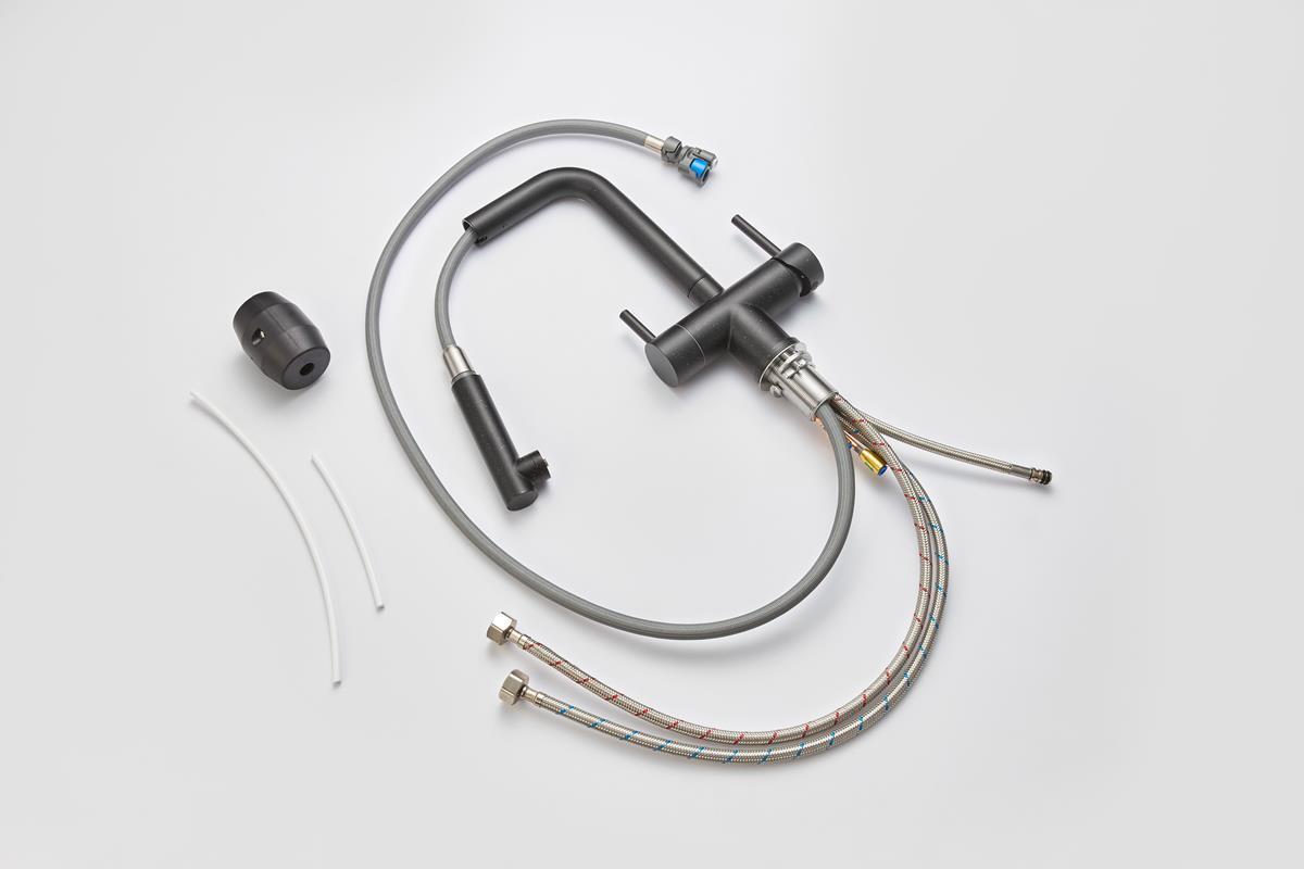 Кухонный смеситель с возможностью подключения фильтра для очистки воды. Фильтрованная вода подается отдельной ручкой через отдельную трубку и не смешивается с водопроводной водой.