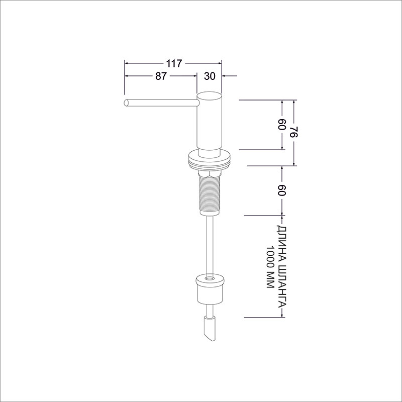Особенностью данной модели является то, что в комплекте вместо колбы для моющего средства входит удлиненная гибкая трубка(100см) с обратным клапаном. В отличие от модификации дозаторов с колбой, которую регулярно нужно пополнять, у модели ED-405 шланг опускается прямо в бутылку с средством, которое ставят под мойку. |