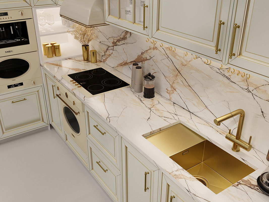 Мойка из нержавеющей стали AISI 304 с PVD покрытием. AISI 304 содержит 18% хрома и 9% никеля, что обеспечивает максимальную устойчивость к коррозии. PVD покрытие (метод покраски путем напыления в вакууме) встраивается в кристаллическую решетку металла, образуя прочный защитный слой. Легко удаляется жир, налет и разводы от воды.