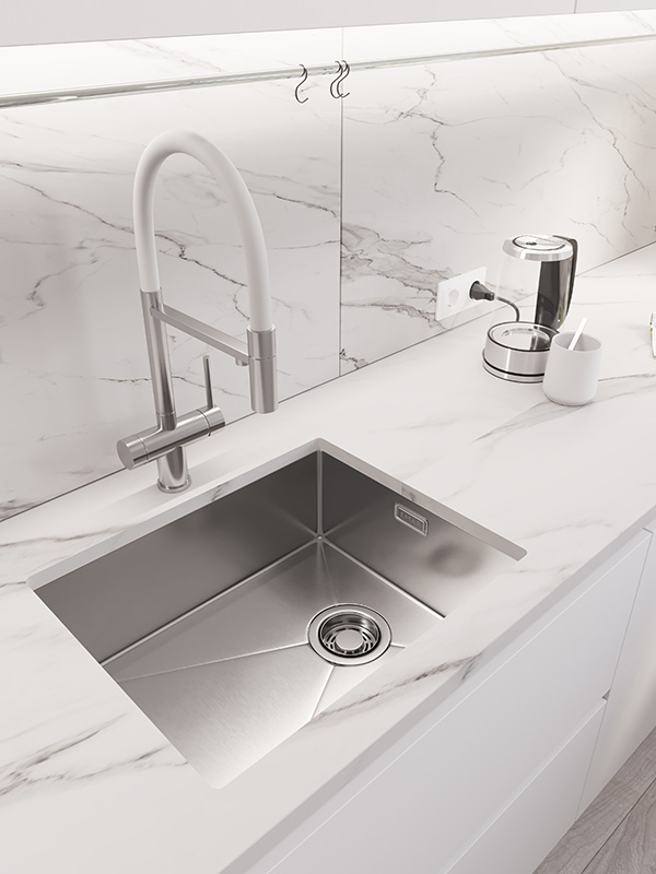 Мойка из нержавеющей стали AISI 304 с PVD покрытием. AISI 304 содержит 18% хрома и 9% никеля, что обеспечивает максимальную устойчивость к коррозии. PVD покрытие (метод покраски путем напыления в вакууме) встраивается в кристаллическую решетку металла, образуя прочный защитный слой. Легко удаляется жир, налет и разводы от воды.