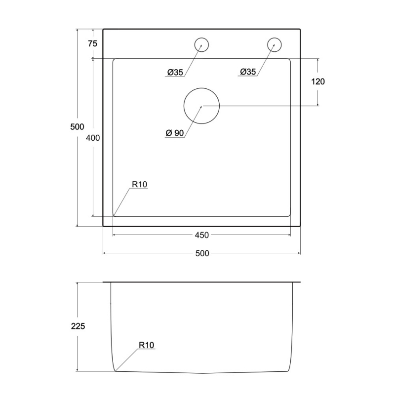 • Размеры мойки: 500 x 500 мм• Размеры чаши: 450 x 400 х 225 мм• Монтажная тумба от 600 мм• Толщина стали: 1 мм• Способ монтажа: врезной / в уровень со столешницей• Размер сливного отверстия: 90 мм• Размер упаковки: 530 x 530 x 250 мм• Вес брутто: 6.50 кг• Гарантия на мойку (сталь) —; 5 лет. Гарантия не распространяется на резиновые прокладки, комплектующие и механические повреждения.• Гарантия на PVD —; 2 года. Гарантия не распространяется на механические повреждения.
