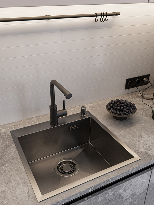 Мойка с PVD покрытием привелкает к себе внимание цветом. И обладает более стойким покрытием к царапинам |