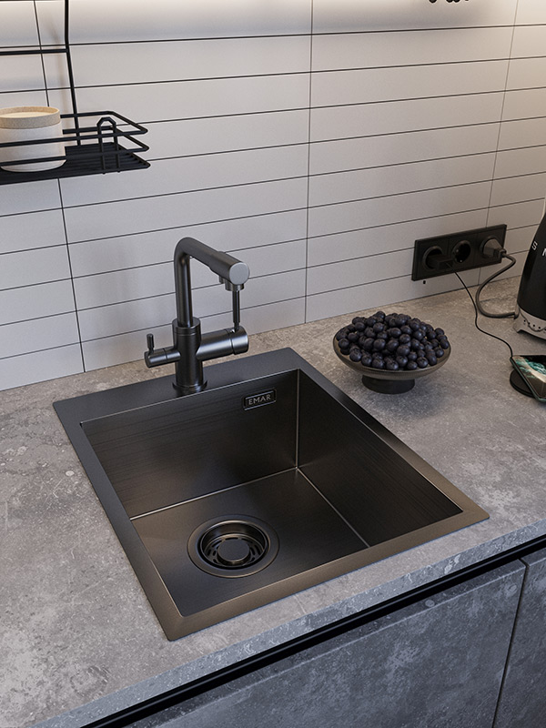 Мойка с PVD покрытием привелкает к себе внимание цветом. И обладает более стойким покрытием к царапинам |