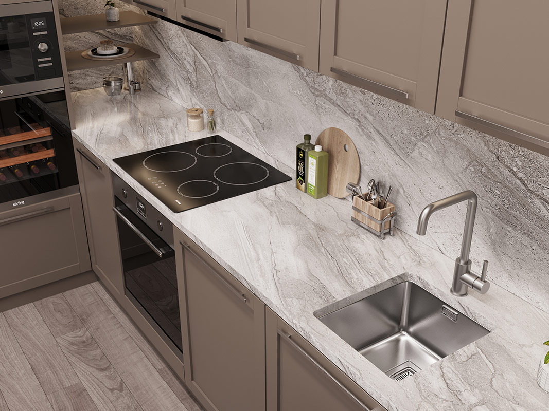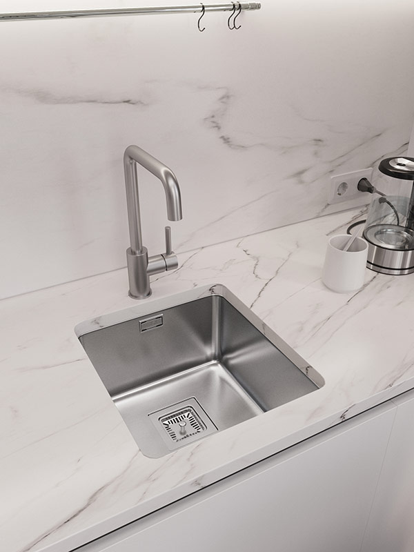 Поверхность раковины сатиновая (Satin);Шлифованная поверхность мойки достигается брашингу (шлифование щётками);