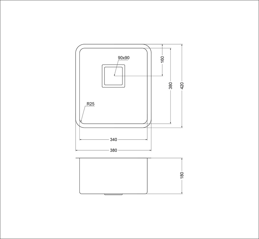 Размеры мойки 380 x 420 мм и глубина чаши 200 мм. Тип исполнения мойки - моноблок.