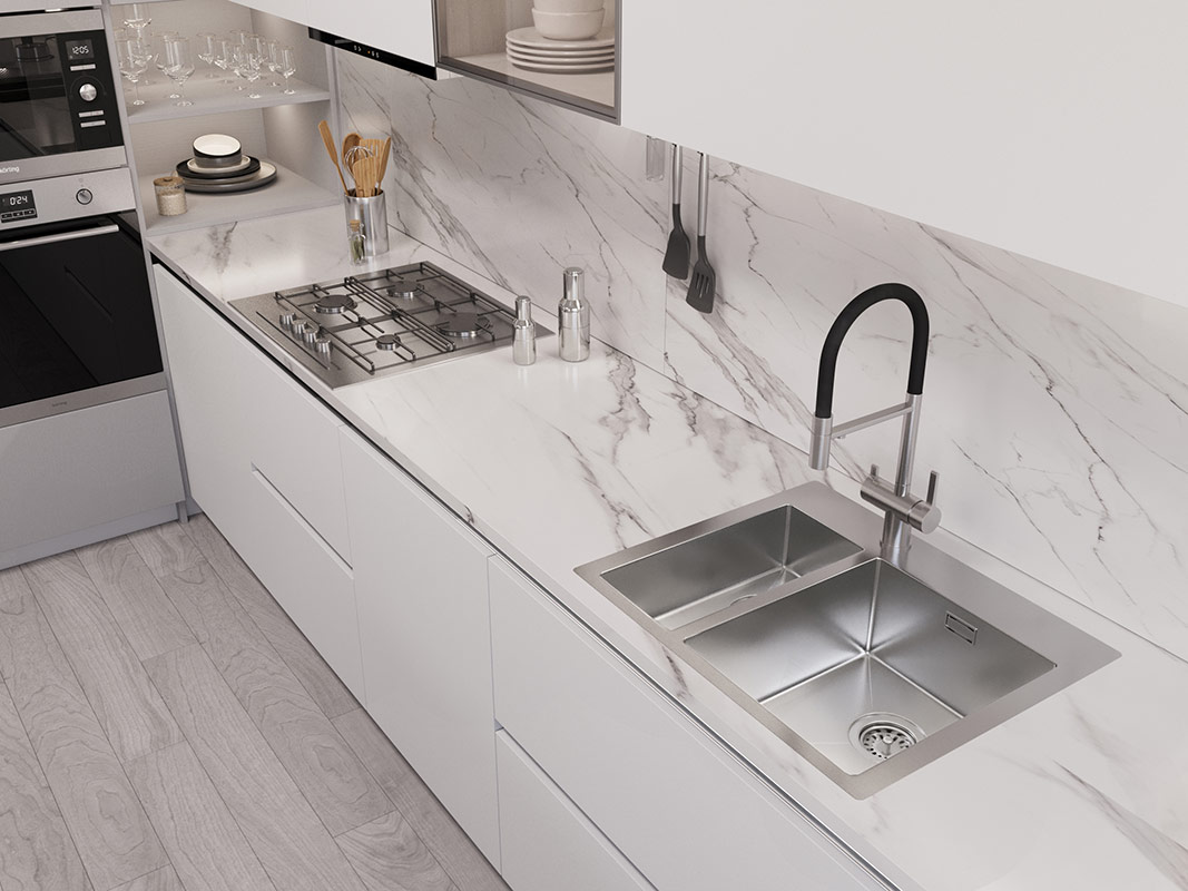 OULIN OL-FTR202R практичная мойка для кухни с двумя удобными чашами. Мойки OULIN производятся из высококачественной нержавеющей стали марки 304.