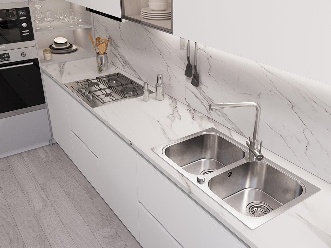 OULIN OL-8905 удобная, креативная мойка для кухни с двумя чашами. Оборачиваемая; Данные мойки (OULIN) производятся из высококачественной нержавеющей стали марки 304; Оборачиваемая, основная чаша можно располагаться как справа, так и слева; Поверхность мойки сатиновая (Satin); В мойку встроены дополнительные Шумопоглощающие накладки с обратной стороны мойки.