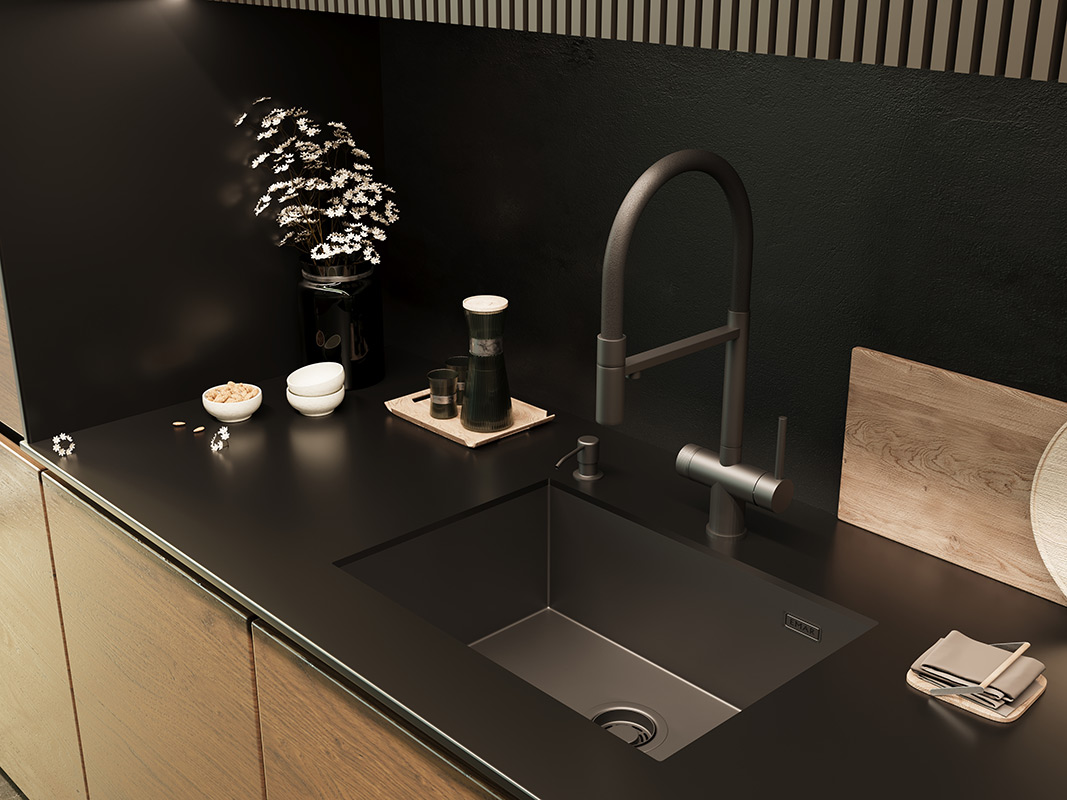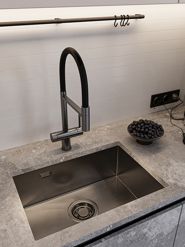 Мойка с PVD покрытием привелкает к себе внимание цветом. И обладает более стойким покрытием к царапинам |