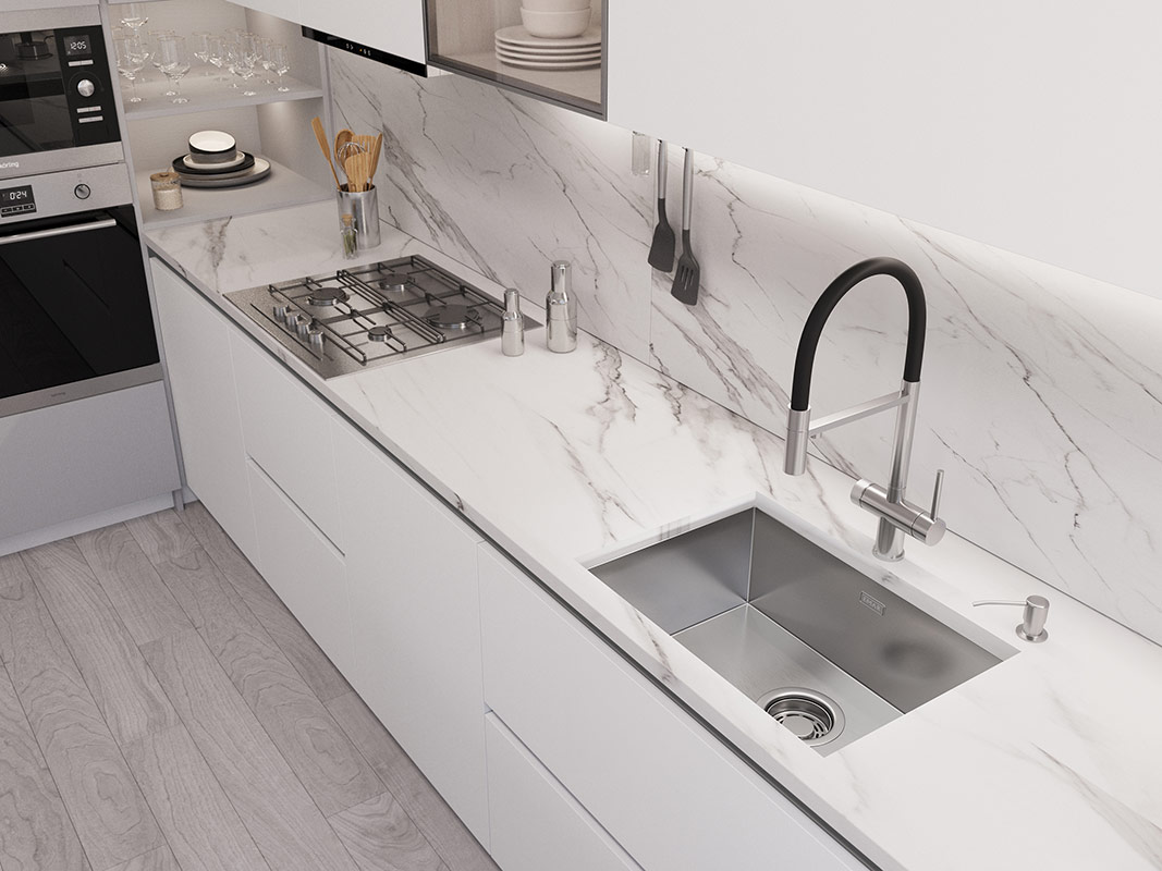 Мойка из нержавеющей стали AISI 304 с PVD покрытием. AISI 304 содержит 18% хрома и 9% никеля, что обеспечивает максимальную устойчивость к коррозии. PVD покрытие (метод покраски путем напыления в вакууме) встраивается в кристаллическую решетку металла, образуя прочный защитный слой. Легко удаляется жир, налет и разводы от воды.