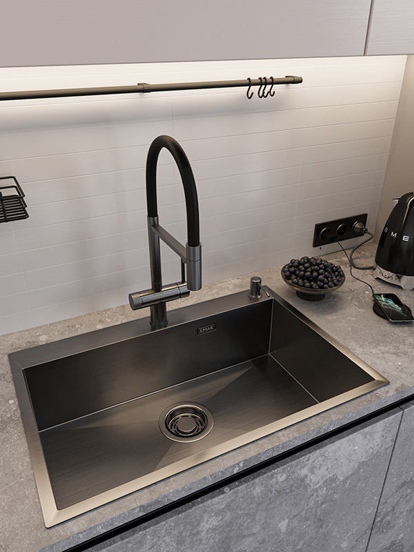 Мойка с PVD покрытием привелкает к себе внимание цветом. И обладает более стойким покрытием к царапинам |