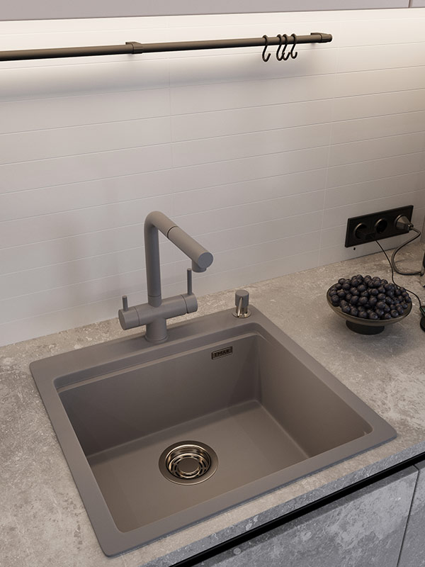 Модель оснащена коландреом в комплекте. Обновлена чаша слива и перелив. Кварцевые мойки однородные в своей структуре и обладают приятной, на ощупь, фактурой. |