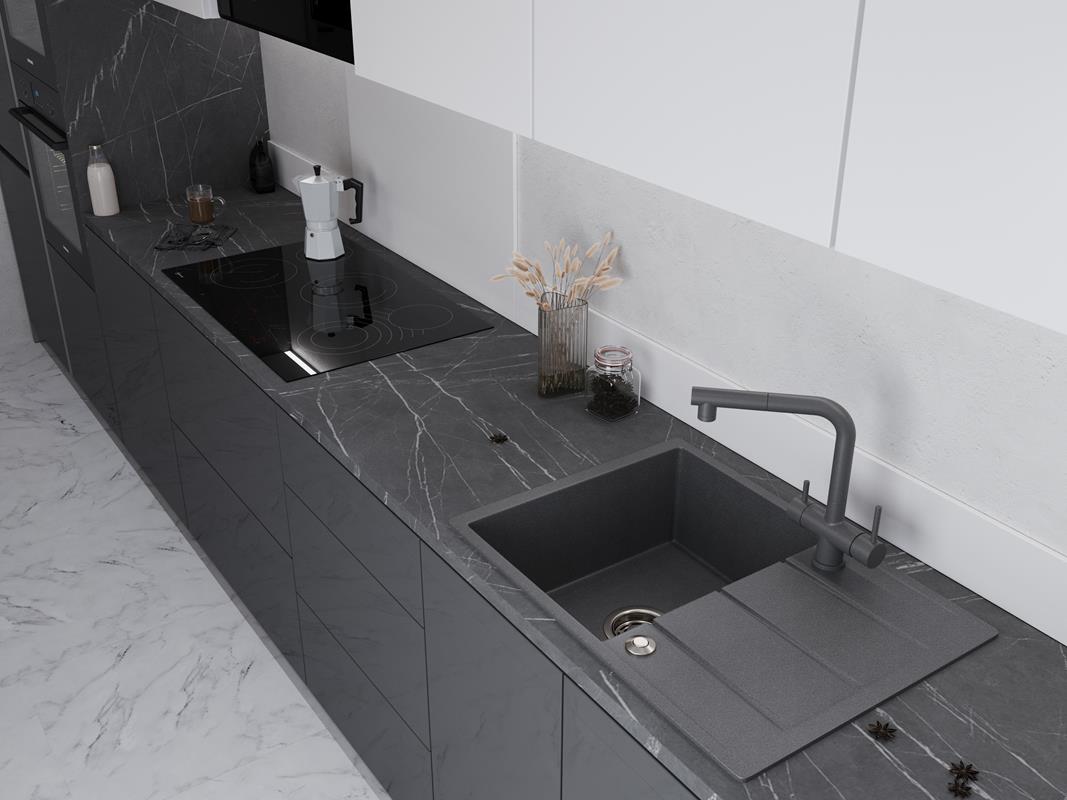 Кварцевые мойки однородные в своей структуре и обладают приятной на ощупь фактурой. |