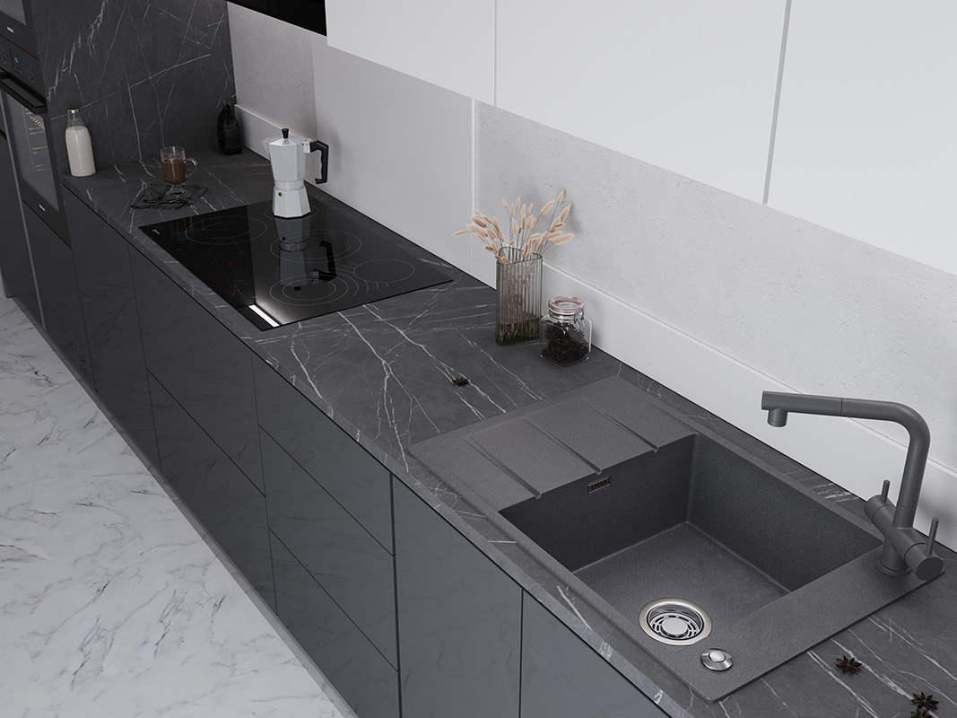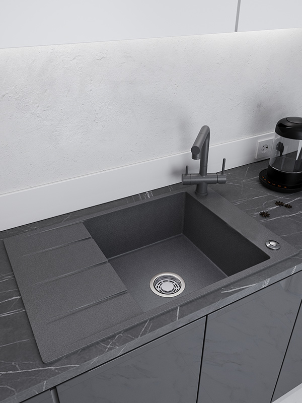 Кварцевые мойки однородные в своей структуре и обладают приятной на ощупь фактурой. |