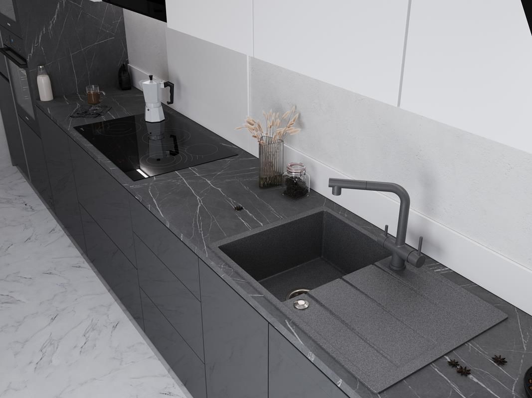 Кварцевые мойки однородные в своей структуре и обладают приятной на ощупь фактурой. |
