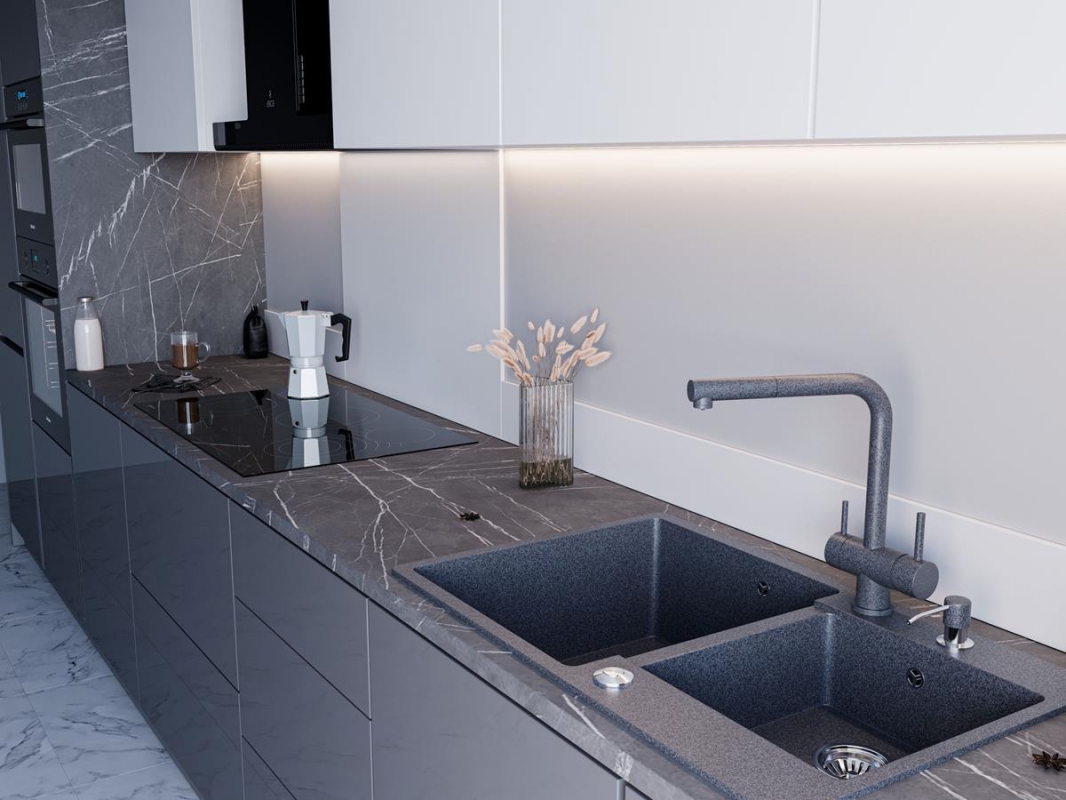 Кухонные мойки EMAR QUARTZ на 78% состоят из измельченного кварца различных фракций и 22% связующих полиэфирных смол.