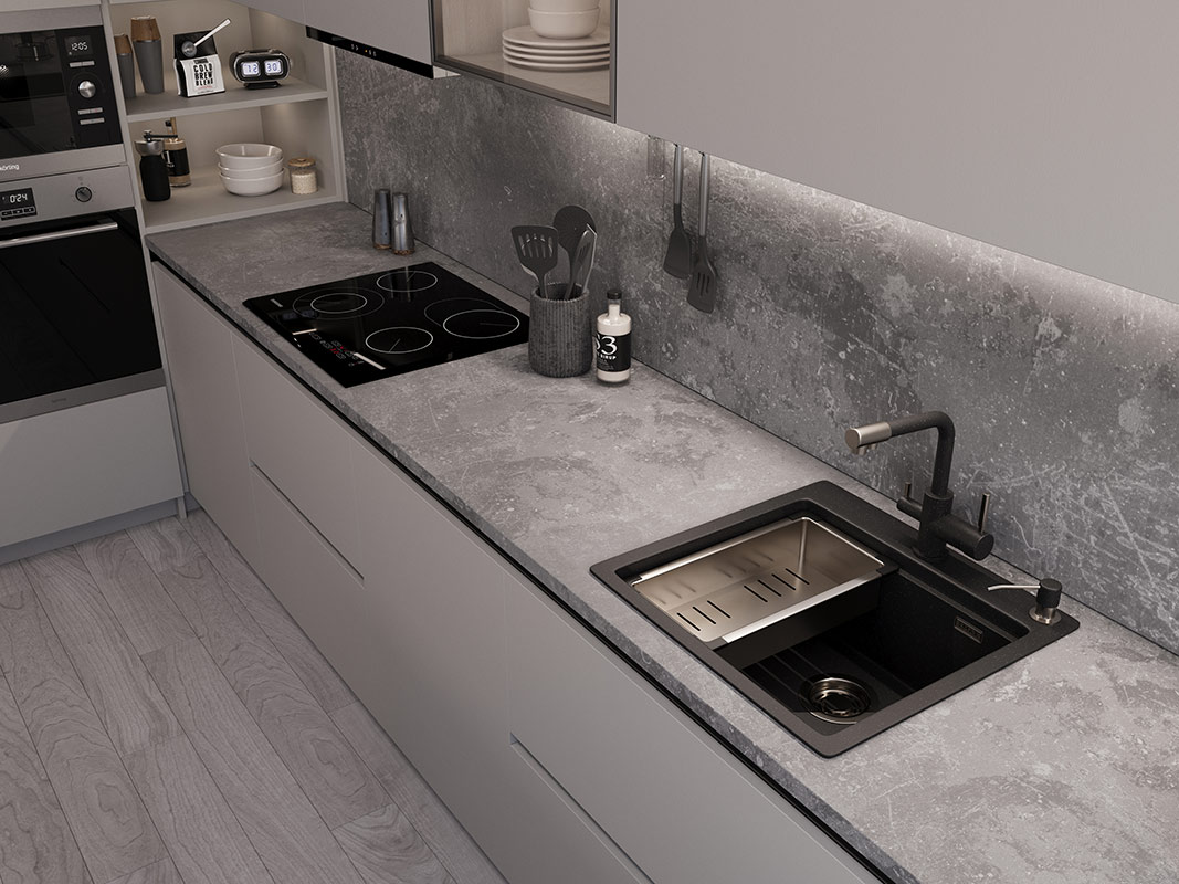 Кухонные мойки EMAR QUARTZ на 78% состоят из измельченного кварца различных фракций и 22% связующих полиэфирных смол модифицированных метилметакрилатом.