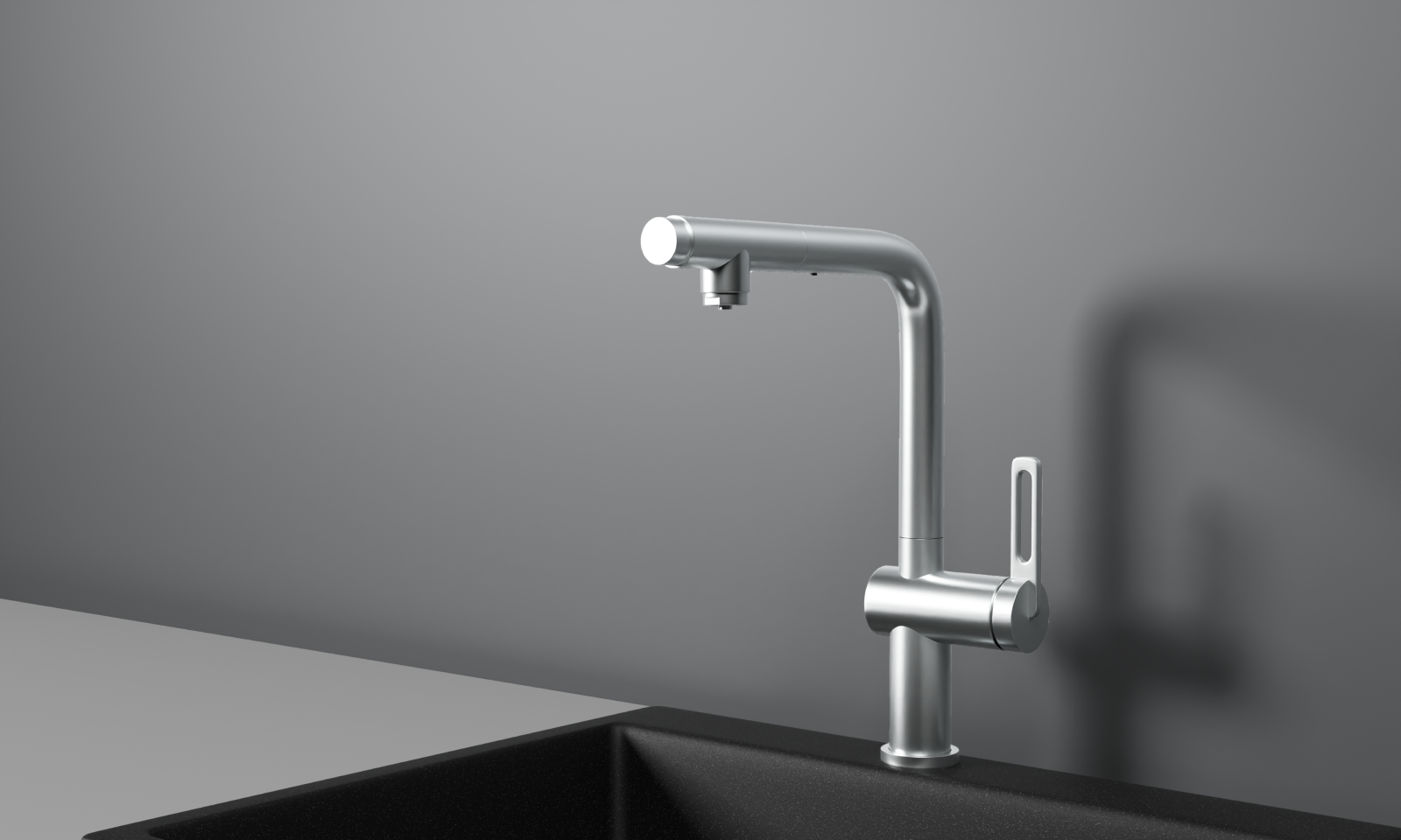 Выдвижной излив – увеличивает охват рабочей зоны и позволяет легко дотянуться до труднодоступных мест.